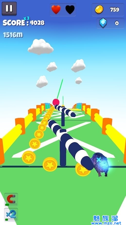 2.立屏设计的跑酷还是比较少见的,但是操作起来很简单,只需要控制就可以了。