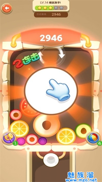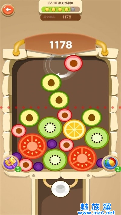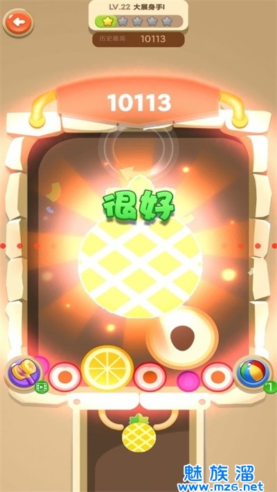 1.只要触摸相同的水果就可以合成,每次合成都可以解锁更高层次的水果。