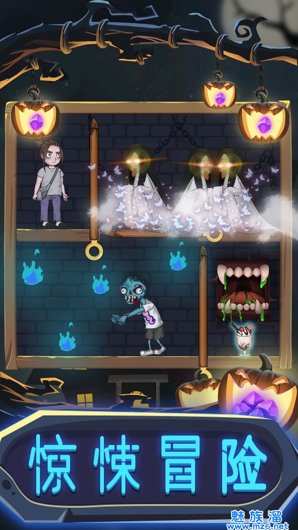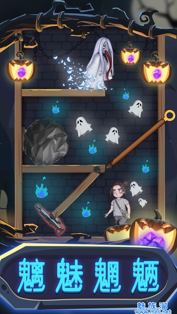 1、结合了拔针、解谜、冒险、鬼屋等各种元素的休闲趣味的抓鬼闯关游戏,带给我们更刺激的玩法挑战。