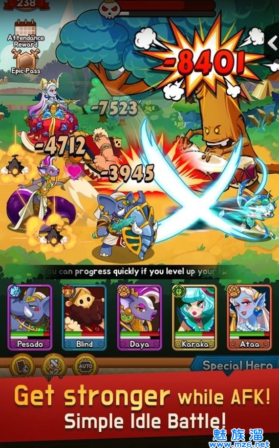 1.每个英雄都有独特的技能,强大的能力可以触发各种属性帮助战斗;