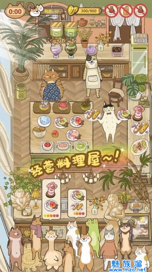 1、游戏中,你将制作出各种各样的料理,你在这里小有名气,来你这里吃饭的猫咪非常多;