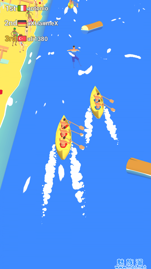 1、游戏中你需要驾驶着你的龙舟,和对手进行比拼;