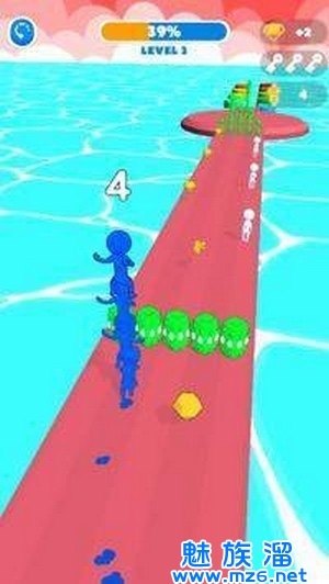 玩家可以控制小人向前奔跑,并收集相同颜色的小人以使自己更强壮。
