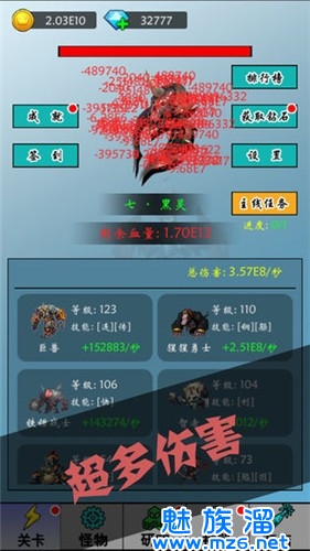 2、各种各样有趣的挂机冒险模式,独一无二的神器装备和融入打造系统。