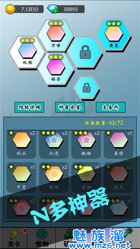 3、可以收藏不同的装备、开展出不同的神器世界,灵活自由的渡过。