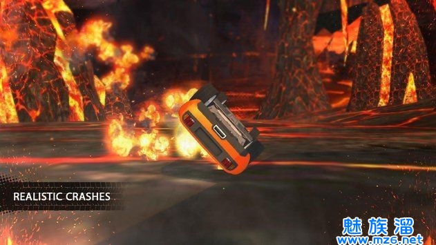 在这款游戏中,开车的地方不是在平等的公路上,而是在一个火山里,游戏非常刺激好玩,