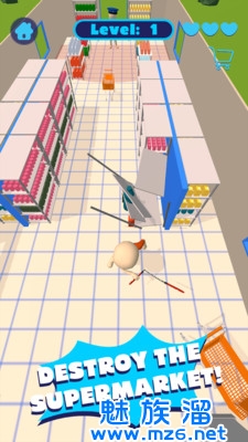 1、玩家需要来对超市里面的所有物品来进行破坏,破坏的越多越好;