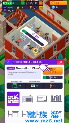 在您的大学校园添加新区域!建立新的教室,运动场或机构建筑物;开放的休闲区,教师休息室,学生俱乐部;安装更好的篮球架或现代化的黑板……开设新的系,并增加教育计划:数学,法律,医学院,哲学,文学,物理,化学或工程。您必须聪明地成长才能达到应有的尊贵地位。明智的管理将使您拥有一个庞大的大学校园。研究情况,看看您的可能性,并耐心地投资平衡!