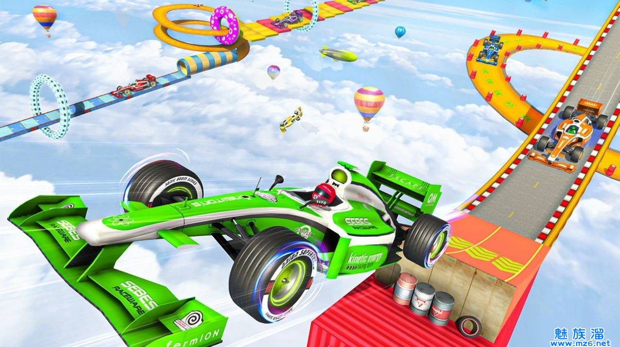 2、对于特技赛车和公式赛车gt赛车,您将不得不跳上大型坡道公式赛车游戏在3d轨道上行驶。