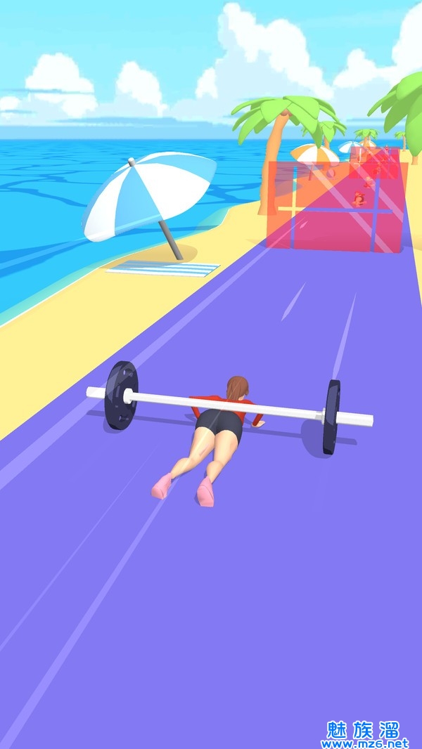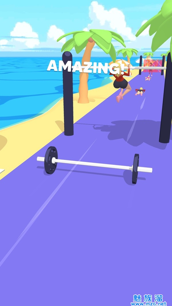 2、在游戏中我们随着赛道一直不停的奔跑,途中能够捡到更多的杠铃,而我们需要做的事情也是比较的简单的。