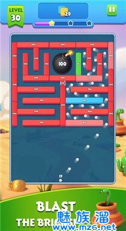2、越到积木砖球爆炸后面,你面对的关卡越困难,善于去使用道具的功能帮助自己顺利过关;