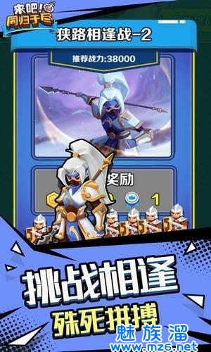 来吧同归于尽是一款非常益智的休闲策略的模拟战争类小游戏。在游戏中,玩家将穿越到古代去感受战争的魅力。招兵买马,不断地训练自己的军队,不断地扩大自己的领土。不同的游戏角色会给玩家带来不一样的游戏体验,玩家想要在游戏中称王称霸吗,还在等什么,快来和我一起下载体验吧!!