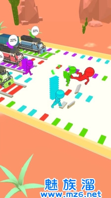 造铁轨大作战游戏是一款模拟建造铁路的竞赛游戏。几个玩家将互相竞争,不断的手机材料铺设铁路,看谁铺的又快又好。造铁轨大作战游戏画风非常的魔性,给玩家带来的超多的欢乐。如果你是一个火车迷,一定不能错过这款有趣的铁路建造游戏,让你更好的了解火车。