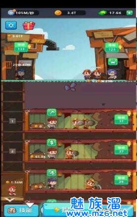 1、在这你需要使用金币,大量的升级你的工人属性,这样他们工作会更加有效率,能够开采出更多的金矿哟。