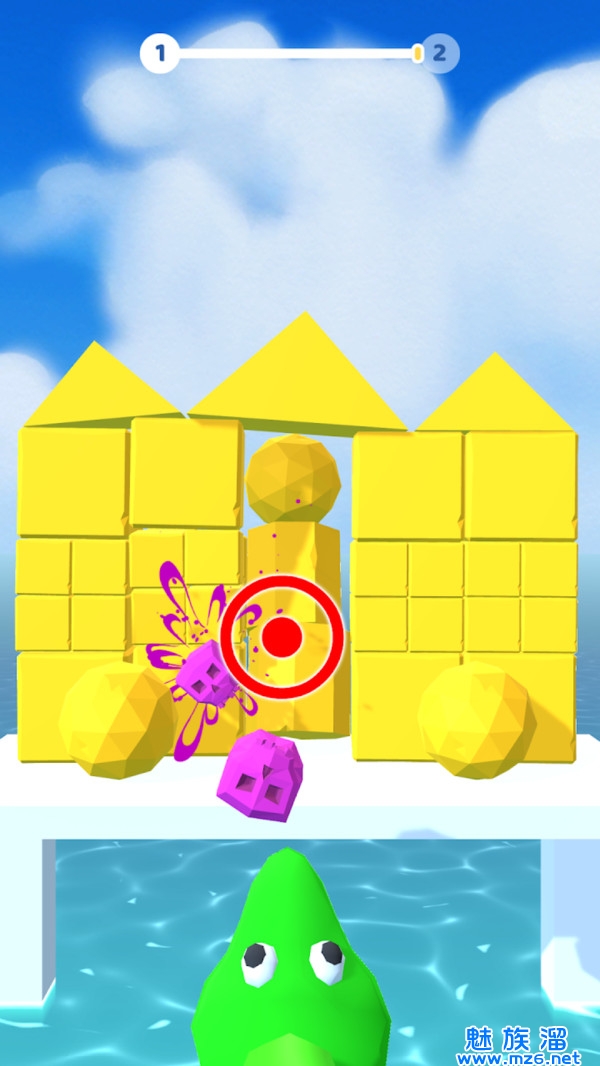 3、在最后的时候你会变的很大,可以瞄准城堡,喷射子弹去,将城堡给摧毁。