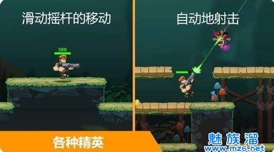 1、触摸屏幕,左下角的触摸键控制人物方向与行进,右下角的触摸键控制开枪与跳过。复杂的操作方法,使你更快的融入游戏。