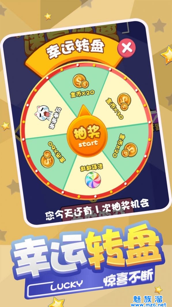 3、幸运转盘惊喜不断,完成一个关卡即可获得抽奖机会,开启幸运大转盘。