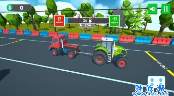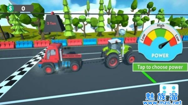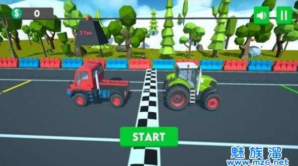 卡车拉力竞技这款游戏能够让你自由的选择拉任何的货车,我们可以在自己的后面拉一个轻一点的卡车,这样我们的速度就会更快,同时在这里我们还能和其他的真人玩家竞技,我们在开局的时候就一定要领先才行,不然的话就很容易被其他人给超车了,这样就很难受,所以我们可以选择在弯道来超车。