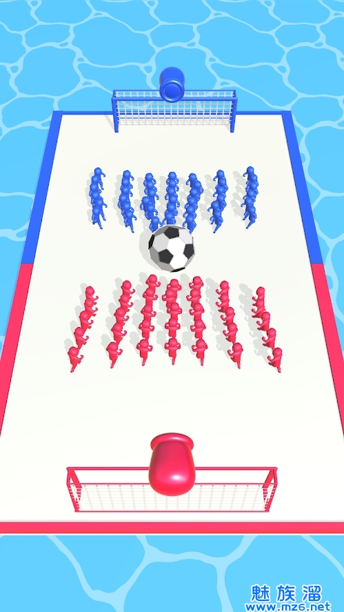 人群足球游戏是一款趣味休闲的足球比赛游戏。人群足球游戏的玩法还是非常丰富的,你可通过多种方式获取游戏的胜利。基本的将足球推入对方的球门,高难度的就是利用足球将对方的人员推入水下,达到以多打少的局面。人群足球游戏策略才是最重要的,优秀的策略能够轻松赢取比赛的胜利。
