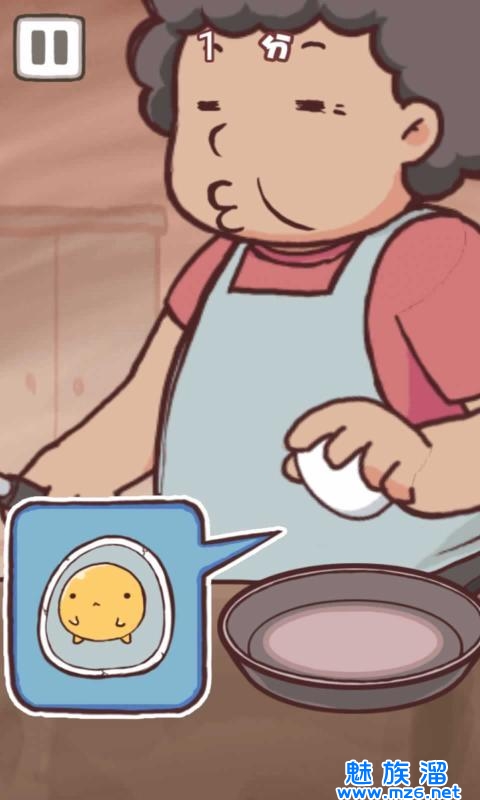 1、在这里你的唯一目标就是保护鸡蛋,在阿姨要敲开鸡蛋做料理时,快速地点击平底锅,阻止阿姨敲碎鸡蛋;