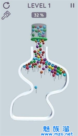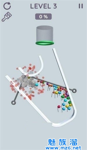 1、别针气球结合了拉针玩法,这是十分的风趣的,挪动别针让气球可以顺利飞到瓶子里。