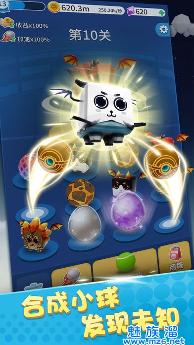 合成小球,发现未知:还想拥有更多不一样的小球?快快挪动你的手指,把相同的球球合成起来,解锁更多未知的球球,带上你新的球球,炫酷弹到底!
