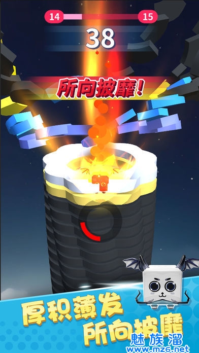 畅快消除,一冲到底:点击屏幕按住不放,让弹球一层一层地击穿彩色砖块,嗖嗖嗖地直达地面,就可以过关了!