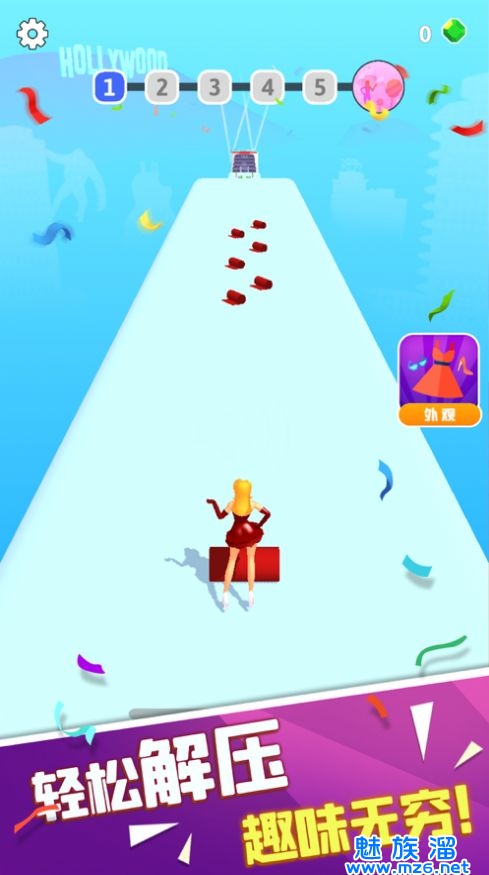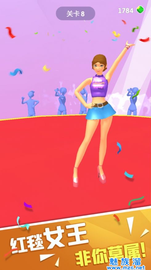 2、拾取红毯道具,躲避突如其来的障碍物,就这样到达聚光灯的终点吧;
