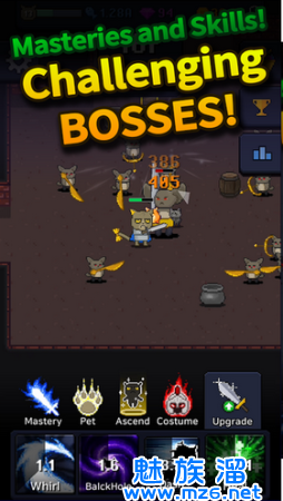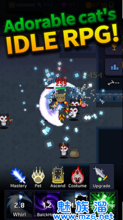 1.升级和进化你的猫来打得很好。使用猫技能,会产生奇幻效果。