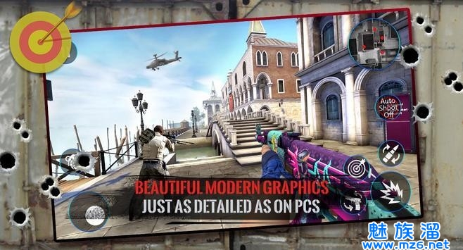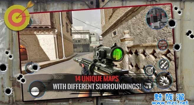 1、在新的移动3DFPS中与其他玩家发生冲突,射击动作永无止境;