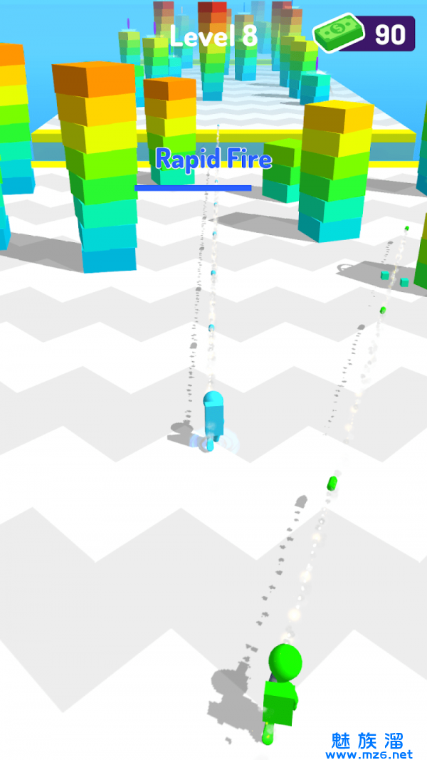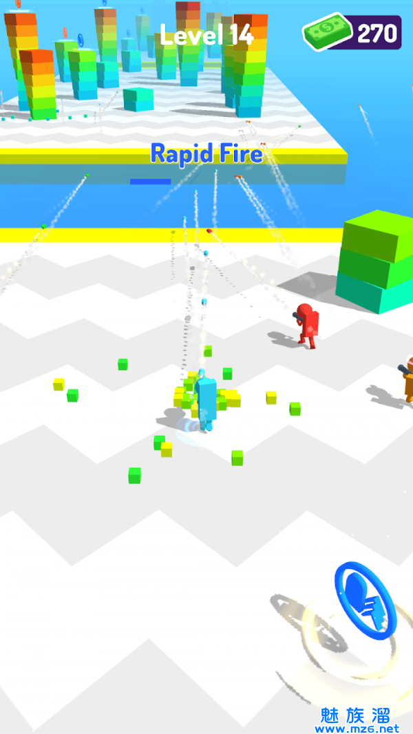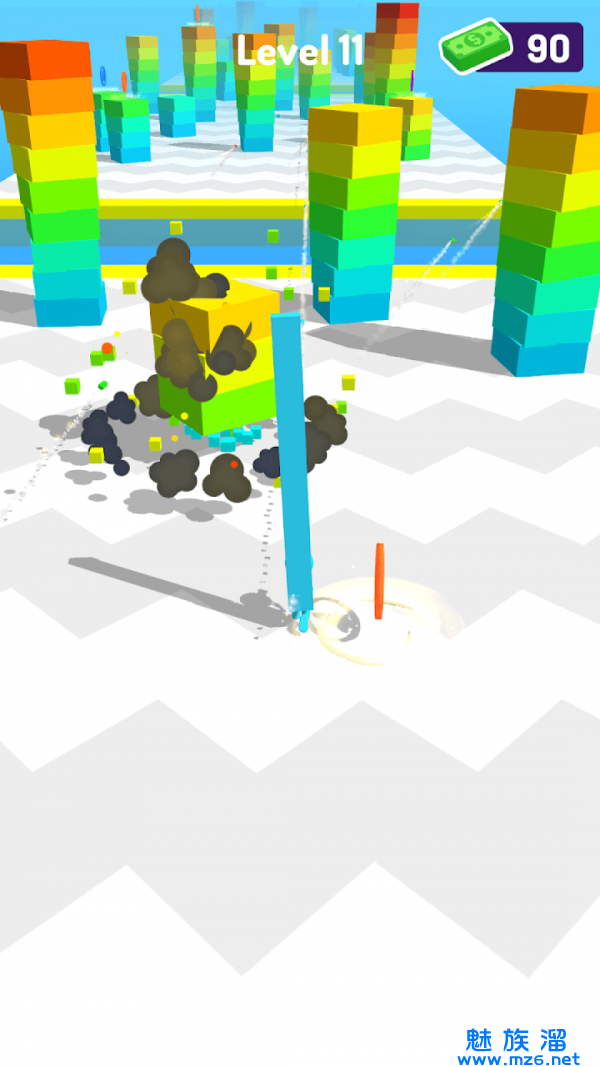2、这里将有不同颜色的木块,玩家需要收集他们并堆起来,越高越好;