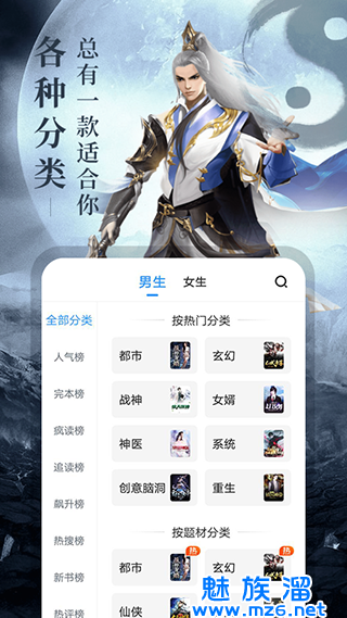 【热门分类】网罗热门分类,陪你度过每一个日夜(都市、言情、玄幻、武侠、穿越、悬疑等);