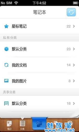 *在查看的时候可以按照日期来进行浏览,也能够按照以往的分类进行查看,并能够对笔记添加星号。