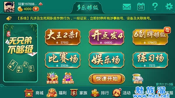 游戏内不仅有开点发4、大王2杀1的经典规则,还提供进贡与非进贡等多种场次选择,满足不同玩家的够级偏好。