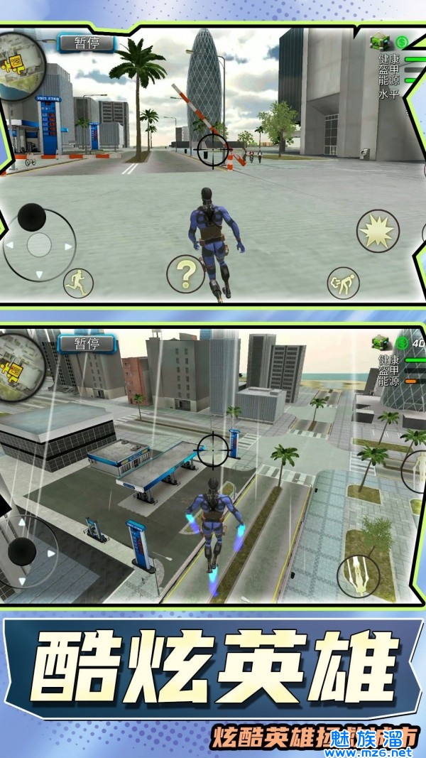 5、灵活操英雄角色,以守护城市安全为己任,自由应对各种各样的挑战。
