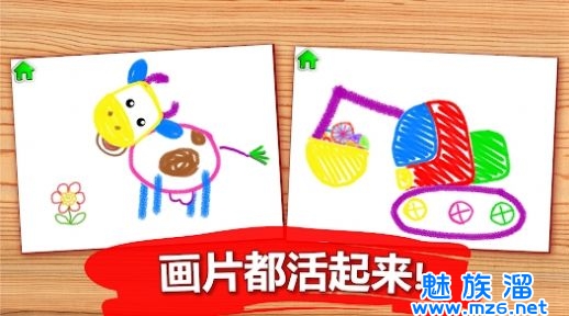 1、游戏内置了各种不同的绘画元素,例如各种可爱的动物、汽车、花卉等等;