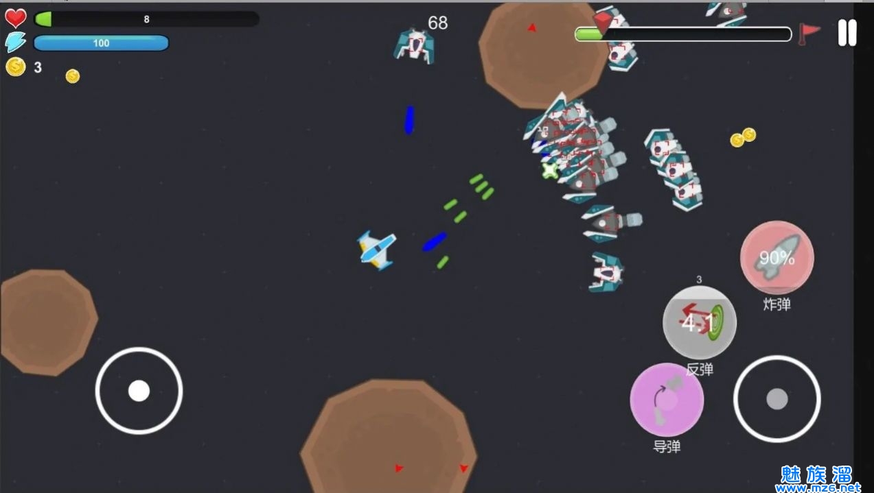 1.轻松简单的操作方式,控制自己的角色进行移动躲避,击败来袭的敌人,玩起来非常容易上手体验。