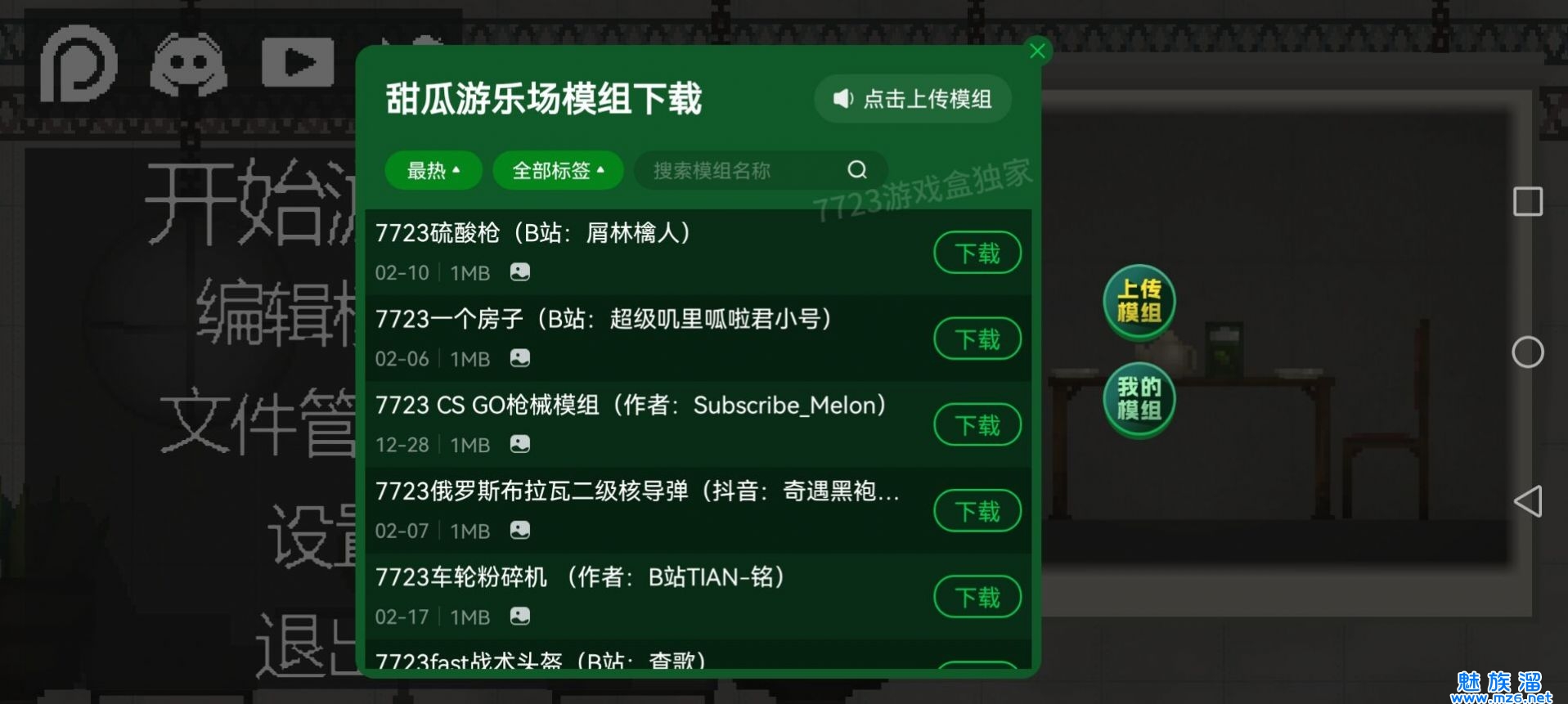 一、自带模组1、进入游戏点击打开7723模组,选择一个模组然后点击下载
