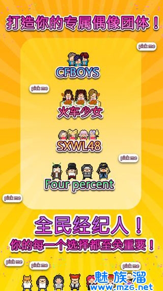 3.通过偶像天团养成记,你可以亲手组建你喜欢的偶像团体,没有黑粉没有绯闻,随意拉郎配,只要你喜欢,什么男团女团都能风靡全世界。