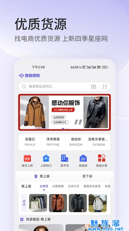 跨联易购app(com.zj.jx.klyg)是一款很不错的服装批发购物软件,在这款软件中汇集了大量不同类型不同款式的服装批发产品,各种最新上线的服装衣物、热销产品、时尚造型衣物等资源全面覆盖,在线批发采购更便捷。在跨联易购官网版中还能通过搜图的方式拿货,有需要的用户快试试吧。