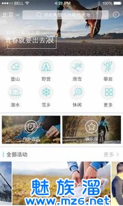 内容有:登山、野营、滑雪、攀岩、潜水、雪乡等,为用户提供安全、娱乐、开心的俱乐部功能,