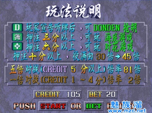使用键盘指令进行操作(如投币、压分、摸牌等)。