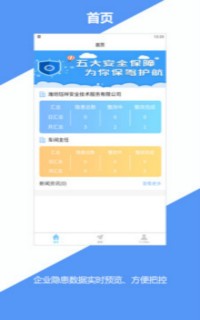 3、首页展示员工及企业的隐患排查统计数据;发布页可由员工提交公司隐患给安全员,进行整改安排与审核。