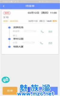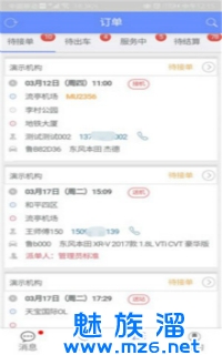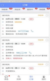 包括“待接单”、“待出车”、“服务中”、“待结算”4个列表,用户可以接单、拒单、行程打卡、事故汇报以及上报费用。