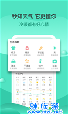 精准的天气预报,包含最近7天的天气、气温、风力等信息的预报;