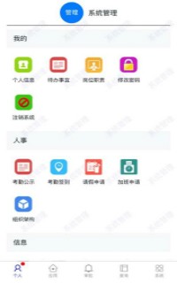 功能有考勤管理、员工信息管理、加班审批管理、请假审批管理、活动发起投票管理、调查发起投票管理、通知发布查询管理、公文管理;