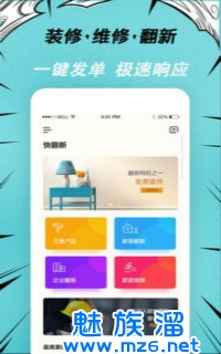 快翻新是一个为用户提供一站式的家装、企业翻新服务的APP,可以为客户提供免费设计、上门量房,包括硬装、软装、毛坯房装修、旧房翻新、二手房翻新、办公室翻新、门面翻新、厂房翻新,上门维修、水电维修、电器、智能家居、家居家具建材等设备购买及安装服务。