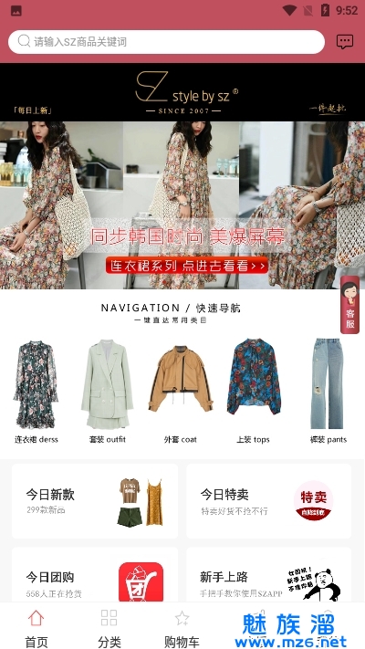 SZ女装批发APP定位于为商家和买家提供“方便、快捷、安全、品质”的服务,致力于提升顾客的购买体验,让每位顾客都能选购到优质的商品。SZ APP客户群体面向全国实体店店主,汇聚了上千款式,每日上新,相当于把批发档口搬到你的手机上,让你轻松在家就能挑遍每日新款和好货,从此告别6点起床、2点吃饭奔波劳累的拿货生活。SZ APP保证厂家直批货源,严格质检,一件起批,让全国女装店主拿货:省钱、省心、省力! 我们坚信通过互联网+服装批发的新模式,SZ APP终将会成为专业的女装批发的领航者。