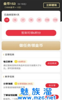 2、注册绑定账号之后才能够购买商品,并且每天签到可以免费领取奖励。