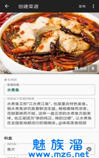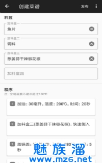 3.采用的是机器人菜谱编辑,可以随意上翻下翻,还可以将你喜欢的菜谱进行收藏哦,非常的方便;